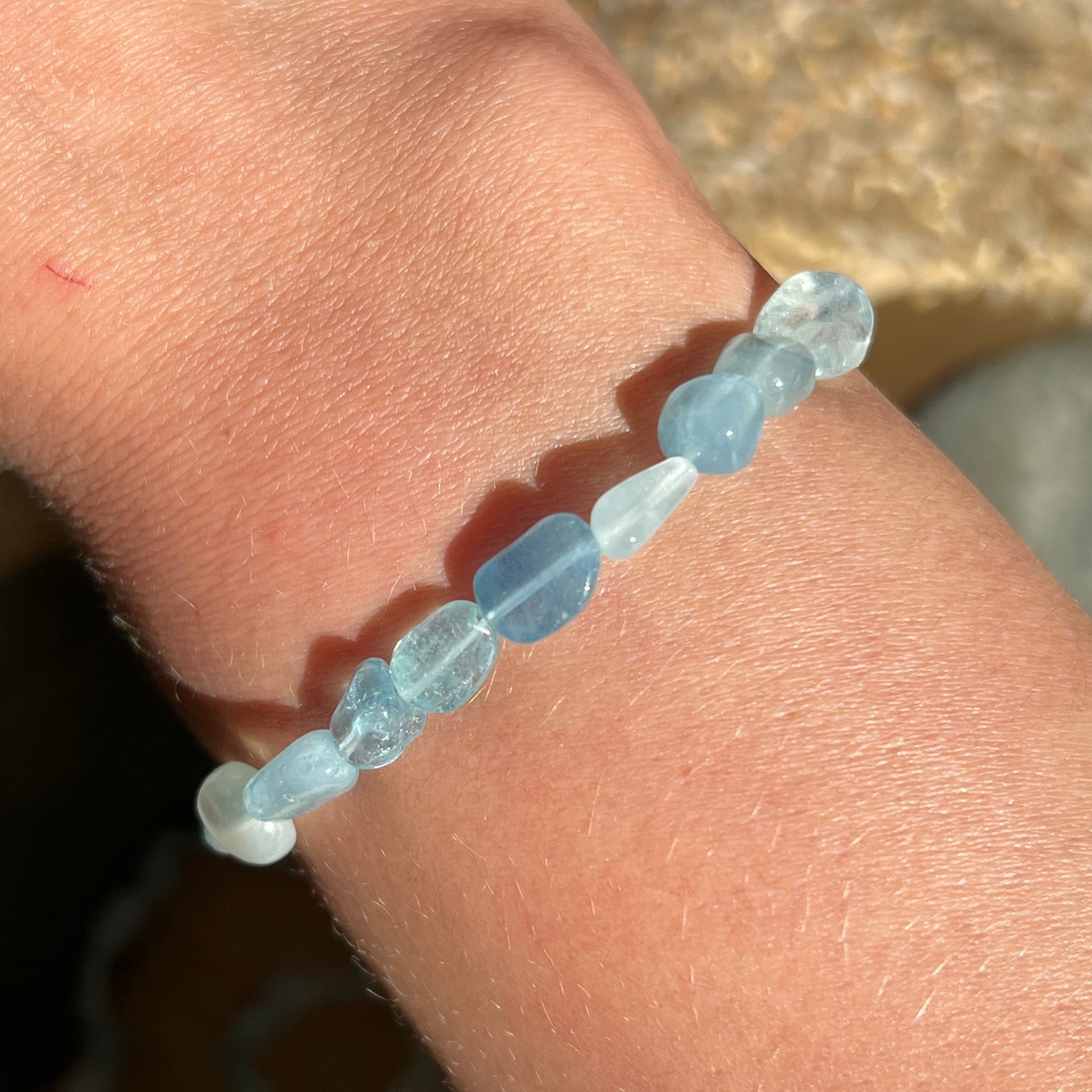 Aquamarin in A - Qualität Nugget Armband auf elastischem Band