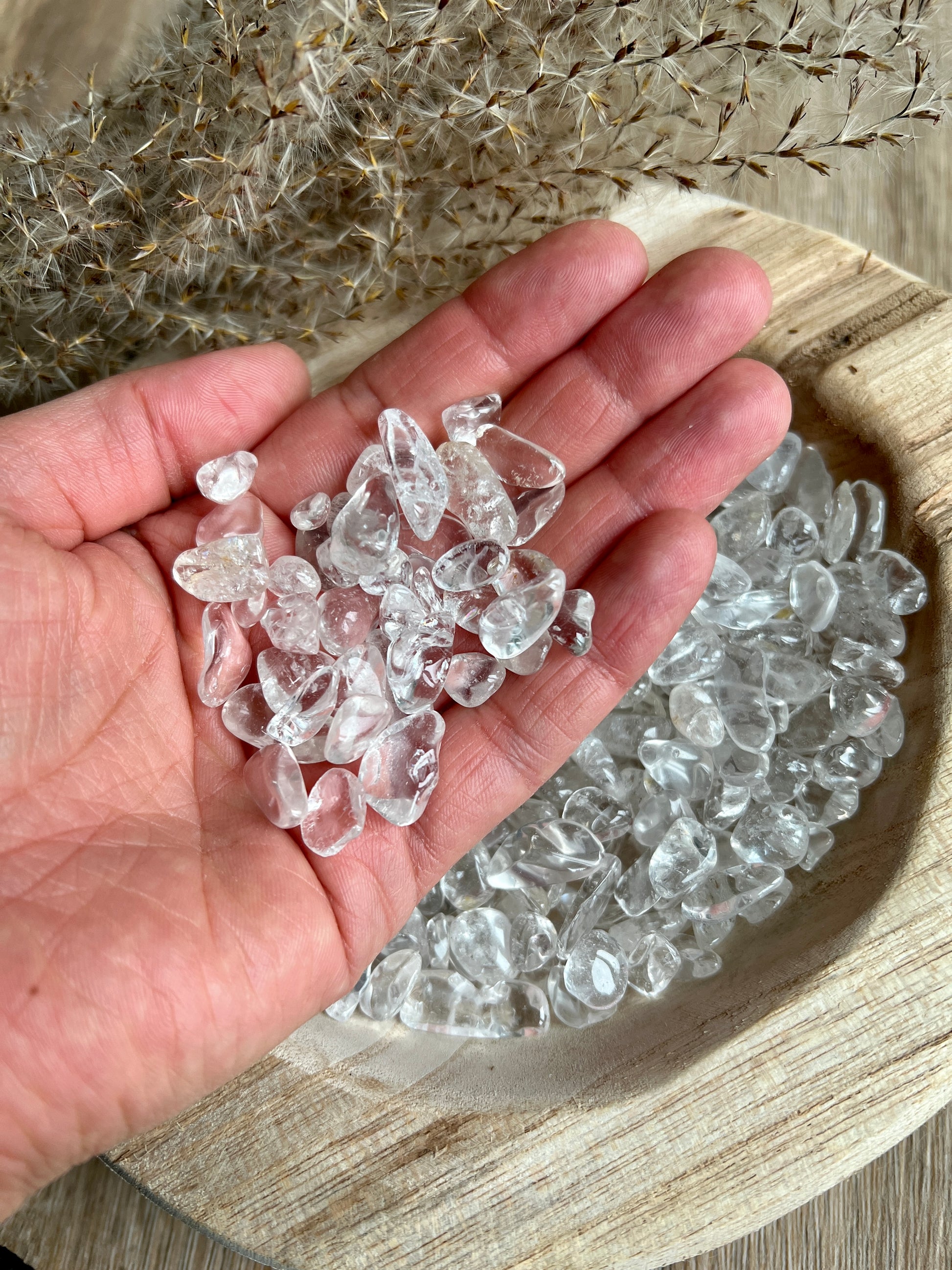kleine Bergkristall Trommelstein Chips/Splitter zum Aufladen deiner Seelensteine.