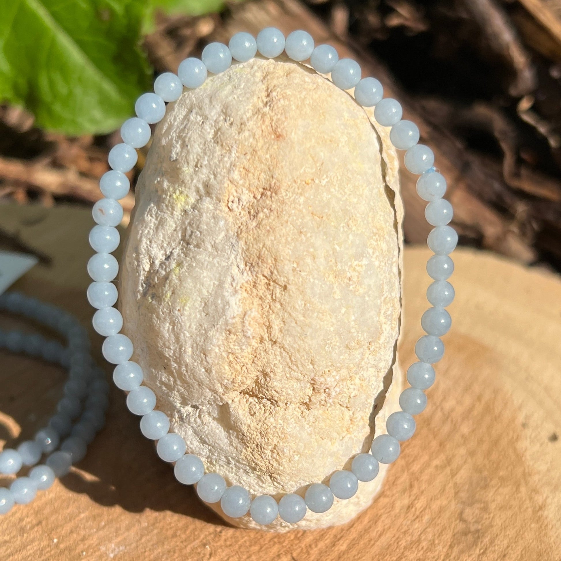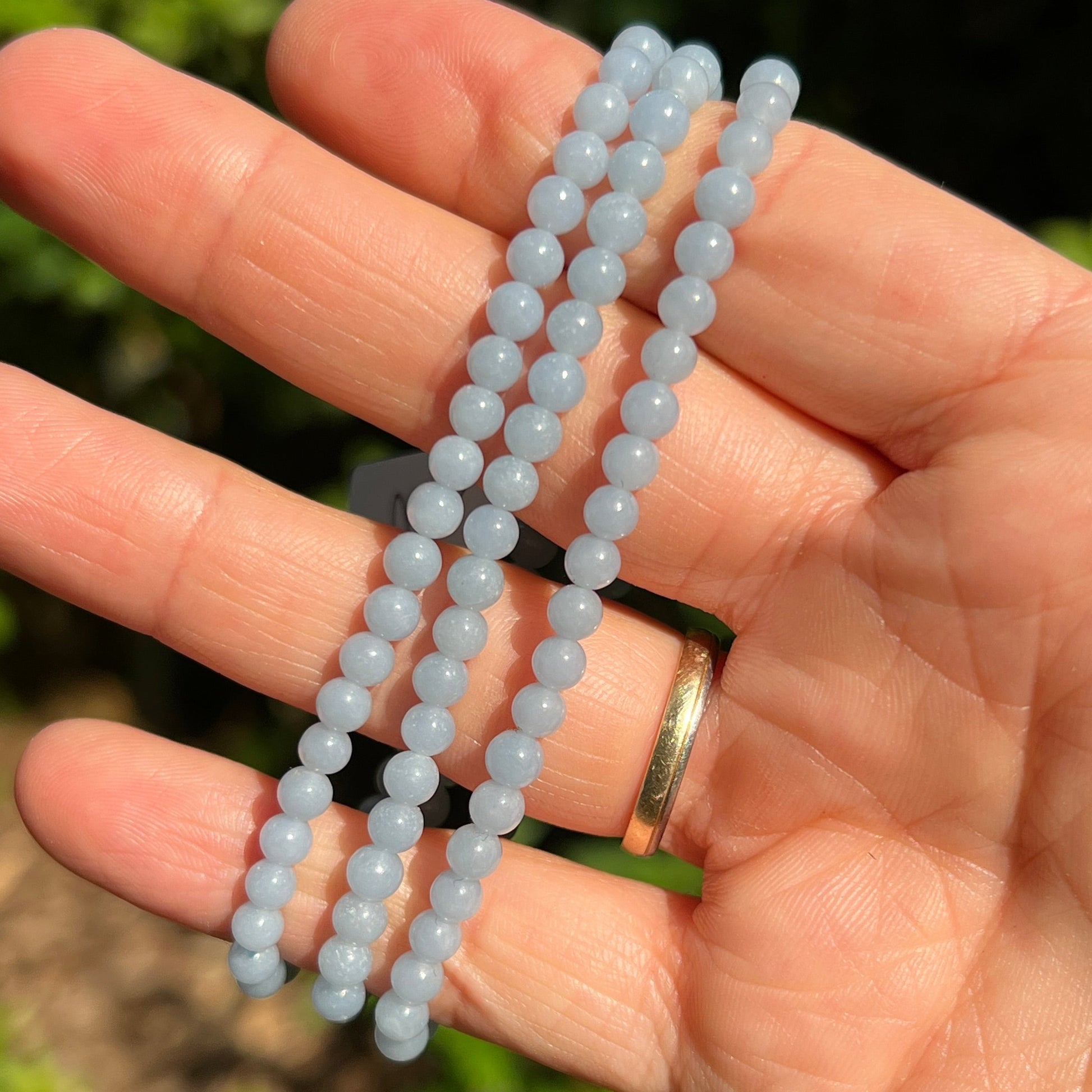 Angelit Kugel Armband auf elastischem Band